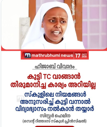 ഹിജാബ് വിവാദം; സ്കൂളിലെ നിയമങ്ങൾ അനുസരിച്ച് കുട്ടി വന്നാൽ വിദ്യാഭ്യാസം നൽകാൻ തയ്യാറാണെന്ന് സെൻ്റ് റീത്താസ് സ്കൂൾ അധികൃതർ.