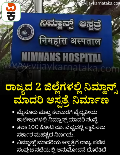 ಕರ್ನಾಟಕದ 2 ಜಿಲ್ಲೆಗಳಲ್ಲಿ ನಿಮ್ಹಾನ್ಸ್ ಮಾದರಿ ಆಸ್ಪತ್ರೆ ನಿರ್ಮಾಣ; ತಲಾ 100 ಕೋಟಿ ರೂ. ಅನುದಾನ!
