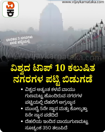 ವಿಶ್ವದ ಟಾಪ್ 10 ಕಲುಷಿತ ನಗರಗಳ ಪಟ್ಟಿ ಬಿಡುಗಡೆ; ದೆಹಲಿಗೆ ಅಗ್ರಸ್ಥಾನ, ಭಾರತದ 3ನಗರಗಳು ಕಳಪೆ ಪಟ್ಟಿಯಲ್ಲಿ