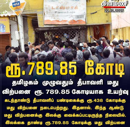 தீபாவளி பண்டிகை: ரூ.789.85 கோடிக்கு மது விற்பனை