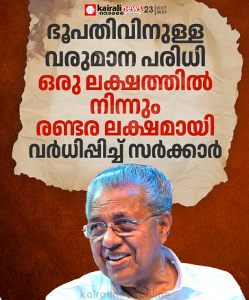 ഭൂപതിവിനുള്ള വരുമാന പരിധി ഒരു ലക്ഷത്തിൽ നിന്നും രണ്ടര ലക്ഷമായി വർധിപ്പിച്ച് സർക്കാർ