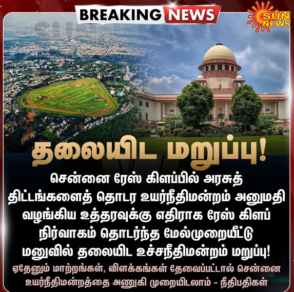 ரேஸ் கிளப் நிர்வாகத்தின் மேல்முறையீட்டு மனுவில் தலையிட உச்ச நீதிமன்றம் மறுப்பு