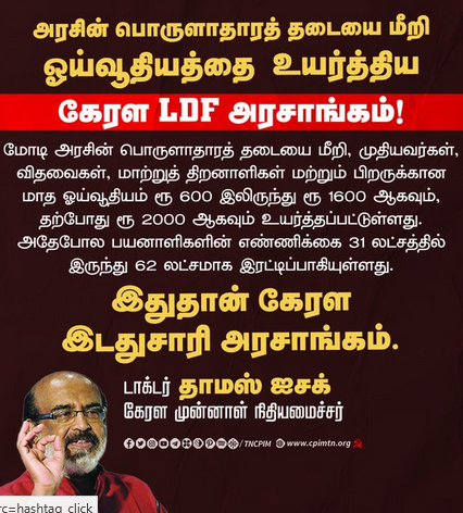 மோடி அரசின் பொருளாதாரத் தடையை மீறி ஓய்வூதியத்தை உயர்த்திய கேரள LDF அரசாங்கம்