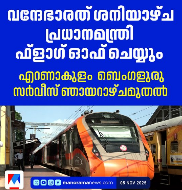 എറണാകുളം-ബെംഗളുരു വന്ദേഭാരത് ശനിയാഴ്ച പ്രധാനമന്ത്രി വെർച്വലായി ഫ്ലാഗ് ഓഫ് ചെയ്യും