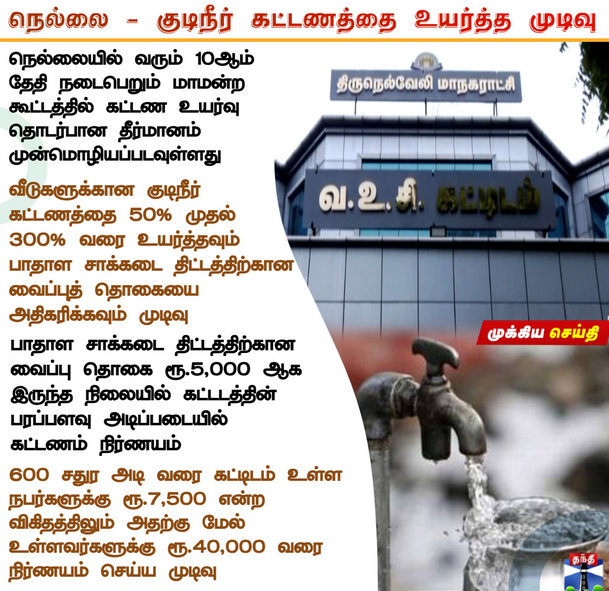 நெல்லை - குடிநீர் கட்டணத்தை உயர்த்த முடிவு