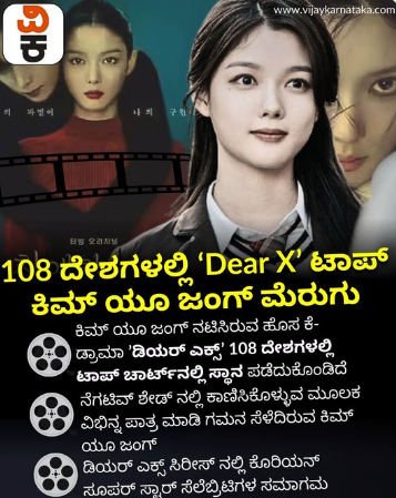 108 ದೇಶಗಳ ಟಾಪ್ ಚಾರ್ಟ್ನಲ್ಲಿ ಸ್ಥಾನ ಪಡೆದ ಕಿಮ್ ಯೂ ಜಂಗ್ ನಟನೆಯ ʼDear Xʼ