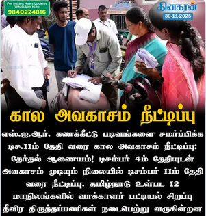 எஸ்.ஐ.ஆர். கணக்கீட்டு படிவங்களை சமர்ப்பிக்க டிச.11ம் தேதி வரை கால அவகாசம் நீட்டிப்பு: தேர்தல் ஆணையம்!