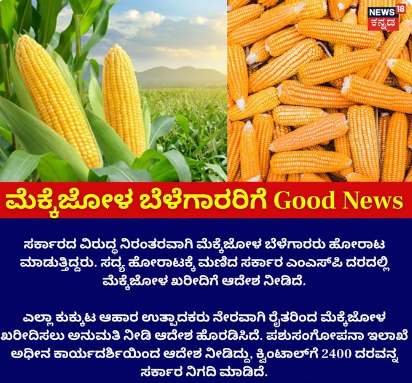 Good News for Corn Growers | ಮೆಕ್ಕೆಜೋಳ ಬೆಳೆಗಾರರಿಗೆ ಸಿಹಿಸುದ್ದಿ