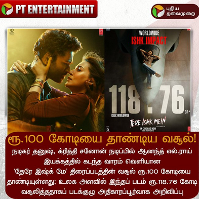 ரூ.100 கோடியை தாண்டிய 'தேரே இஷ்க் மே' பட வசூல்!