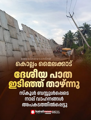 കൊല്ലം മൈലക്കാട് ദേശീയ പാത ഇടിഞ്ഞ് താഴ്ന്നു