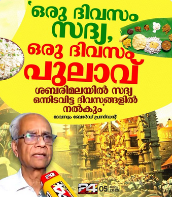 'ഒരു ദിവസം സദ്യ, ഒരു ദിവസം പുലാവ്,ശബരിമലയിൽ സദ്യ ഒന്നിടവിട്ട ദിവസങ്ങളിൽ നൽകും'; ദേവസ്വം ബോർഡ് പ്രസിഡന്റ്