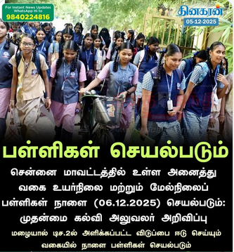 சென்னையில் நாளை பள்ளிகள் செயல்படும்