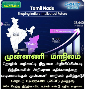 இந்தியாவின் அறிவுசார் எதிர்காலத்தை வடிவமைக்கும் முன்னணி மாநிலம் தமிழ்நாடு!