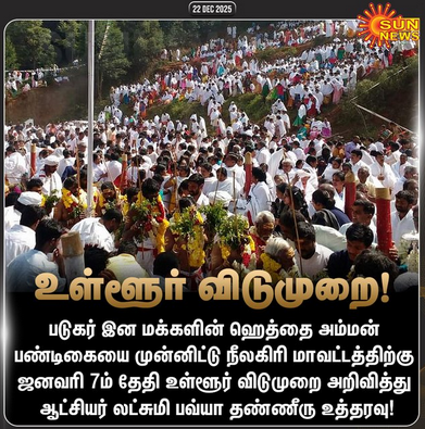 ஜனவரி 7ம் தேதி நீலகிரிக்கு உள்ளூர் விடுமுறை!