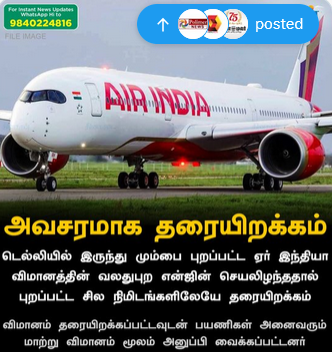 டெல்லியில் இருந்து மும்பை புறப்பட்ட ஏர் இந்தியா விமானம் அவசரமாக தரையிறக்கம்!