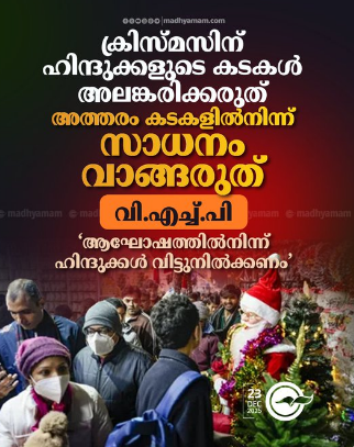 ക്രിസ്മസിന് ഹിന്ദുക്കളുടെ കടകൾ അലങ്കരിക്കരുത്, അത്തരം കടകളിൽനിന്ന് സാധനം വാങ്ങരുത് -വി.എച്ച്.പി; ‘ആഘോഷത്തിൽനിന്ന് ഹിന്ദുക്കൾ വിട്ടുനിൽക്കണം’