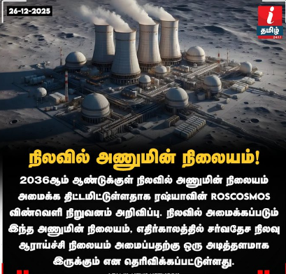 2036ஆம் ஆண்டுக்குள் நிலவில் அணுமின் நிலையம் அமைக்க திட்டமிட்டுள்ளதாக ரஷ்யாவின் Roscosmos விண்வெளி நிறுவனம் அறிவிப்பு..