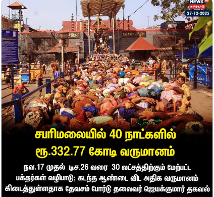 சபரிமலையில் 40 நாட்களில் ரூ.332.77 கோடி வருமானம்