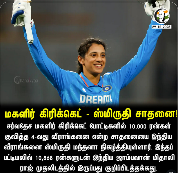 மகளிர் கிரிக்கெட் - ஸ்மிருதி சாதனை!
