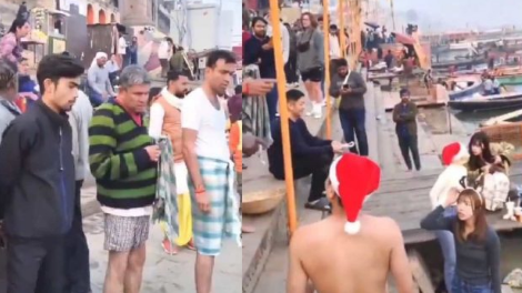 'ഇത് പുണ്യഗംഗയാണ്'; സാന്താ തൊപ്പി അണിഞ്ഞെത്തിയ വിനോദ സഞ്ചാരികളെ തടഞ്ഞ് നാട്ടുകാര്