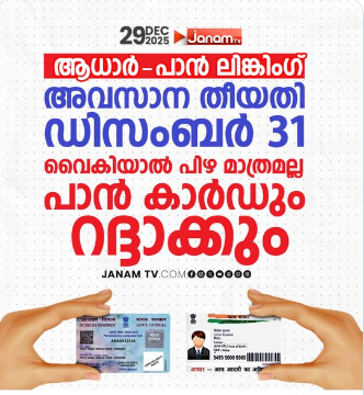 ആധാർ-പാൻ ലിങ്കിംഗ്, അവസാന തീയതി ഡിസംബർ 31 : വൈകിയാൽ പിഴ മാത്രമല്ല പാൻ കാർഡും റദ്ദാക്കും