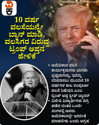 ಡಿಗ್ರಿ ಪಡೆದ ಮೇಲೆ ವಿದೇಶಿ ವಿದ್ಯಾರ್ಥಿಗಳಿಗೆ ಎಕ್ಸಿಟ್ ವೀಸಾ ನೀಡಿ; 10 ವರ್ಷ ವಲಸೆಯನ್ನೇ ಬ್ಯಾನ್ ಮಾಡಿ, ವಲಸಿಗರ ವಿರುದ್ದ ಟ್ರಂಪ್ ಆಪ್ತನ ಹೇಳಿಕೆ