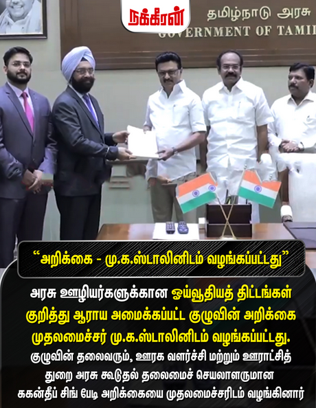 அரசு ஊழியர்களுக்கான ஓய்வூதியத் திட்டங்கள் குறித்து ஆராய அமைக்கப்பட்ட குழுவின் அறிக்கை முதலமைச்சர் மு.க.ஸ்டாலினிடம் வழங்கப்பட்டது