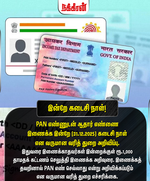 PAN எண்ணுடன் ஆதார் எண்ணை இணைக்க இன்றே (31.12.25) கடைசி நாள் என வருமான வரித் துறை அறிவிப்பு