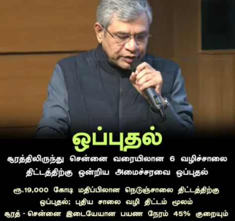 சூரத்திலிருந்து சென்னை வரையிலான 6 வழிச்சாலை திட்டத்திற்கு ஒன்றிய அமைச்சரவை ஒப்புதல்