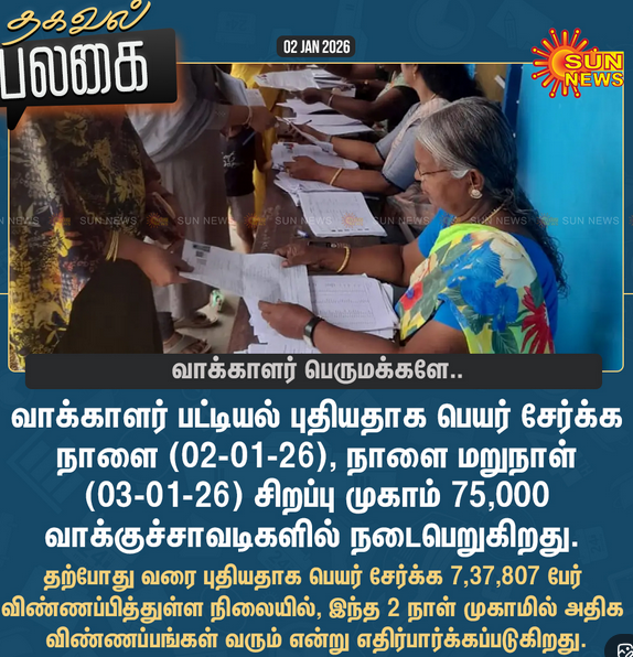 வாக்காளர் பட்டியலில் புதியதாக பெயர் சேர்க்க 2 நாள் சிறப்பு முகாம்கள்
