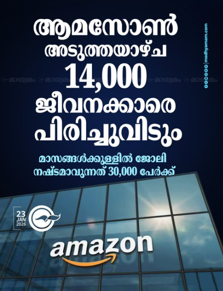 #ആമസോൺ അടുത്തയാഴ്ച 14,000 ജീവനക്കാരെ പിരിച്ചുവിടും; മാസങ്ങൾക്കുള്ളിൽ ജോലി നഷ്ടമാവുന്നത് 30,000 പേർക്ക്