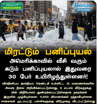 அமெரிக்காவில் பனிப்புயலால் 30 பேர் பலி: மின்சாரம் இன்றி இருளில் தவிக்கும் மக்கள்