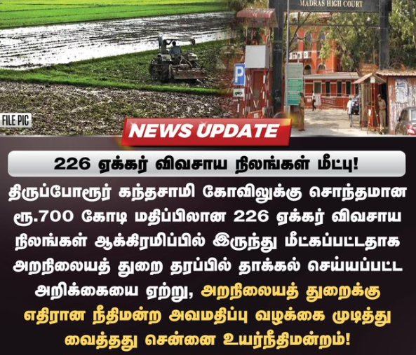 #226 ஏக்கர் விவசாய நிலங்கள் மீட்பு