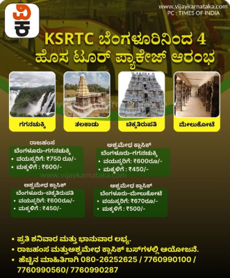 KSRTC ಬೆಂಗಳೂರಿನಿಂದ 4 ಹೊಸ ಟೂರ್ ಪ್ಯಾಕೇಜ್ ಆರಂಭ; 1 ದಿನದ ಬಸ್ ಪ್ರವಾಸ - ಯಾವೆಲ್ಲಾ ಸ್ಥಳ? ಟಿಕೆಟ್ ದರ ಎಷ್ಟು?