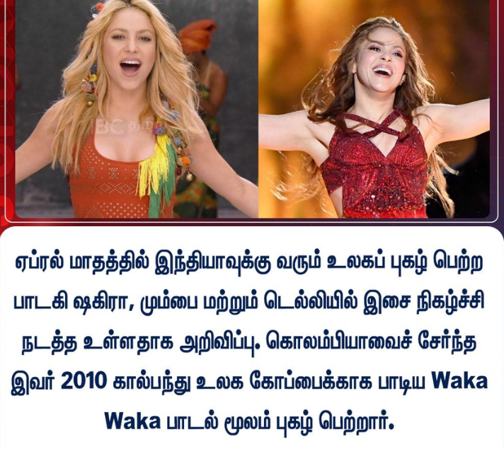 #இந்தியாவுக்கு வரும் உலகப் புகழ் பெற்ற பாடகி ஷகிரா