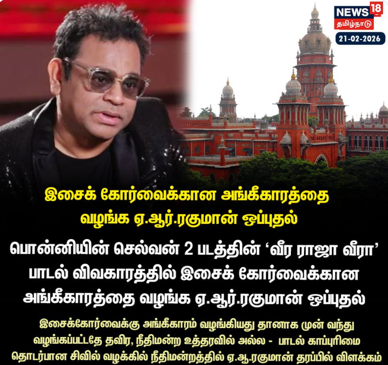 #இசைக் கோர்வைக்கான அங்கீகாரத்தை வழங்க ஏ.ஆர்.ரகுமான் ஒப்புதல்