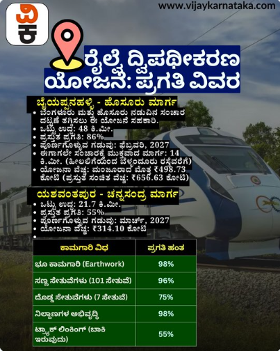 ಕ್ರಾಸಿಂಗ್ ನಿಲ್ದಾಣಗಳು ಹಳಿ ದ್ವಿಪಥೀಕರಣ ಕಾಮಗಾರಿಗಳು ಈಗಾಗಲೇ ಬೈಯಪ್ಪನಹಳ್ಳಿ-ಹೊಸೂರು ಮಾರ್ಗದಲ್ಲಿ ಶೇ 86 ರಷ್ಟು ಮುಗಿದಿದೆ.