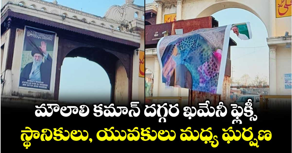 అమెరికా, ఇజ్రాయెల్ వైమానిక దాడిలో మృతి చెందిన ఇరాన్ సుప్రీం లీడర్ ఖమేనీ పట్ల ఇండియాలో కూడా సానుభూతి వ్యక్తమవుతోంది. ఖమేనీ మృతి చెందిన క్రమంలో దేశవ్యాప్తంగా ముస్లింలు నిరసన కార్యక్రమాలు చేపట్టారు. హైదరాబాద్ లోని మౌలాలి దగ్గర ఉద్రిక్తత నెలకొంది... మౌలాలి కమాన్ దగ్గర ఖమేనీ ఫ్లెక్సీ కలకలం రేపింది. కమాన్ కు ఉన్న ఖమేనీ ఫ్లెక్సీని చింపేయడంతో స్థానికులకు యువకులకు మధ్య ఘర్షణ జరిగింది.
