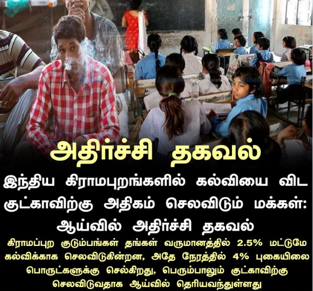 #இந்திய கிராமபுறங்களில் கல்வியை விட குட்காவிற்கு அதிகம் செலவிடும் மக்கள்: ஆய்வில் அதிர்ச்சி தகவல்