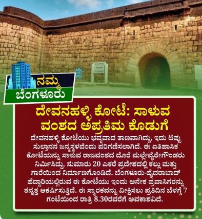 ದೇವನಹಳ್ಳಿ ಕೋಟೆ ರಾಜರ ಕಾಲದ ವೈಭವವನ್ನು ಕಣ್ಣಮುಂದೆ ತರುವ ಒಂದು ಭವ್ಯವಾದ ಸ್ಮಾರಕ.