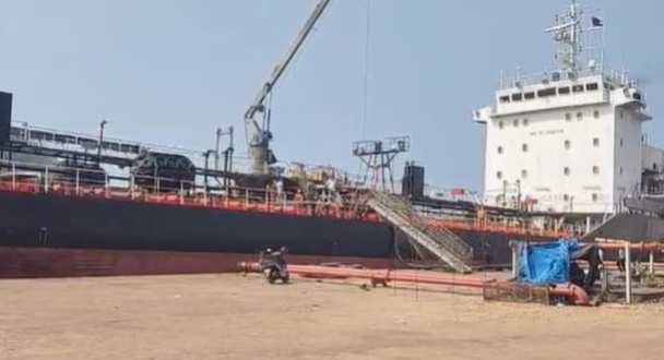 ಯುದ್ಧದ ನಿರ್ಬಂಧ ಮೀರಿ ಯುಎಇಯಿಂದ ಕಾರವಾರ ತಲುಪಿದ ಕಚ್ಚಾ ಡಾಂಬರ್ ತುಂಬಿದ ಹಡಗು