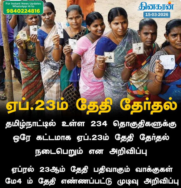 #தமிழ்நாட்டில் உள்ள 234 தொகுதிகளுக்கு ஒரே கட்டமாக ஏப்.23ம் தேதி தேர்தல் நடைபெறும் என அறிவிப்பு!