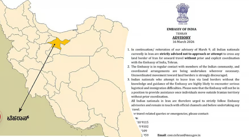 ಮಾಹಿತಿ ನೀಡದೆ ಇರಾನ್ ಗಡಿ ದಾಟದಂತೆ ಭಾರತೀಯರಿಗೆ ರಾಯಭಾರ ಕಚೇರಿ ಎಚ್ಚರಿಕೆ