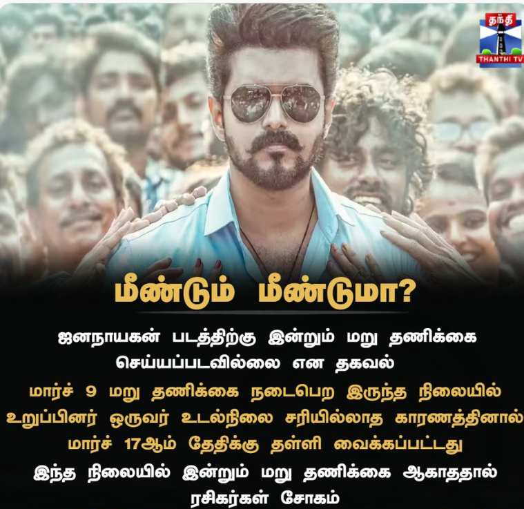 #ஜனநாயகன் படத்திற்கு இன்றும் மறு தணிக்கை செய்யப்படவில்லை என தகவல்