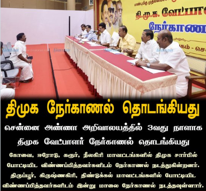 # திமுக வேட்பாளர் நேர்காணல் தொடங்கியது