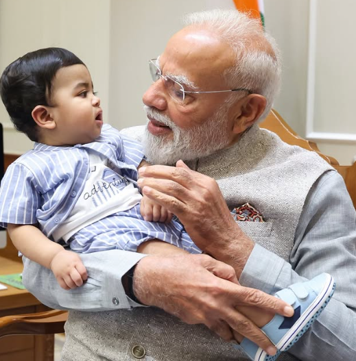 സോഷ്യൽ മീഡിയയിൽ പങ്കിട്ട പോസ്റ്റിൽ തന്റെ 'യങ് ഫ്രണ്ടിനെ' പരിചയപ്പെടുത്തുകയാണ് മോദി. നടനും ബി.ജെ.പി. നേതാവുമായ ജി. കൃഷ്ണകുമാറിന്റെ കൊച്ചുമകൻ നീയോം അശ്വിൻ കൃഷ്ണ എന്ന ഓമിയാണ് ചിത്രത്തിൽ