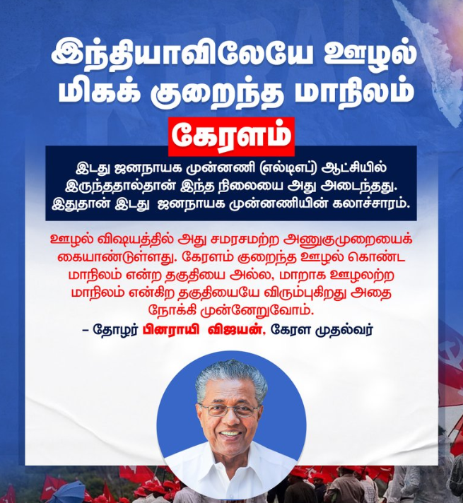 #இந்தியாவிலேயே ஊழல் மிகக் குறைந்த மாநிலம் கேரளமாகும்.