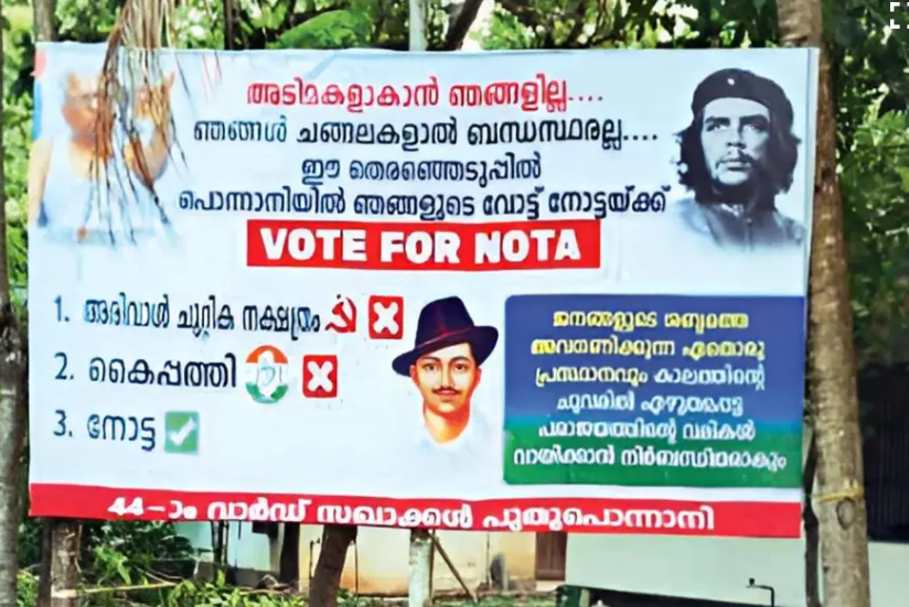 LDF സ്ഥാനാർഥിക്കെതിരേ അതൃപ്തി; പൊന്നാനിയിൽ നോട്ടയ്ക്ക് വോട്ടഭ്യർഥിച്ച് 'സഖാക്കളുടെ' പേരിൽ ബോർഡ്