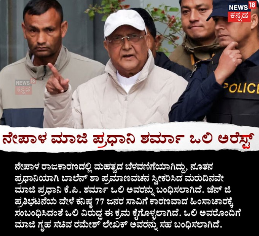 ನೇಪಾಳ ಮಾಜಿ ಪ್ರಧಾನಿ ಶರ್ಮಾ ಒಲಿ ಅರೆಸ್ಟ್