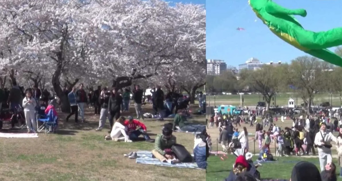 அமெரிக்க தலைநகர் வாஷிங்டனில் உள்ள நினைவுச்சின்னம் அருகே செர்ரி மரங்கள் பூத்துக் குலுங்கியதைத் தொடர்ந்து நடத்தப்படும் வருடாந்திர பட்டம்விடும் திருவிழா பார்வையாளர்களை கவர்ந்தது.